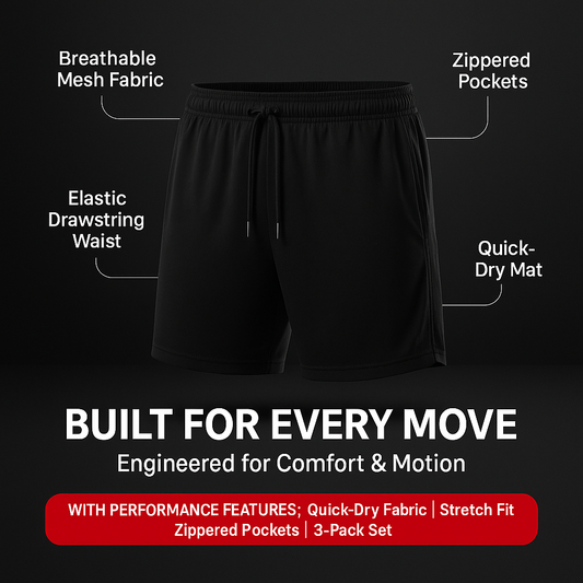 HoopStride 3-Pack Men’s Basketball Shorts – Breathable & Zippered
