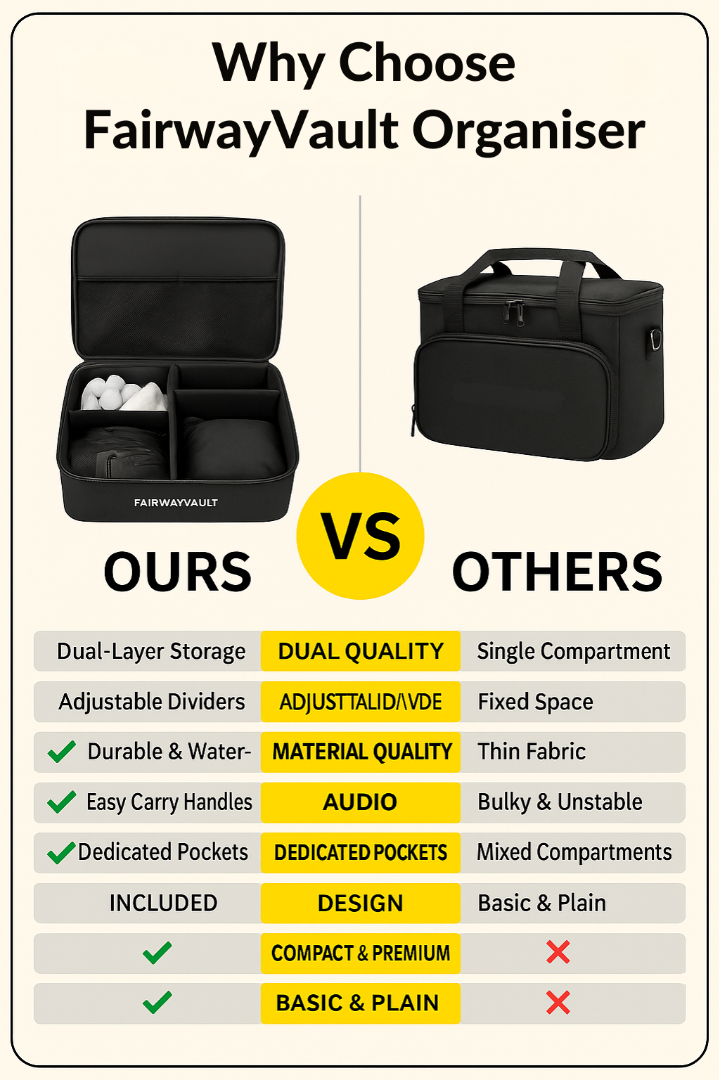 I play two or three times a week, so keeping my gear neat was always a hassle. FairwayVault solved that instantly. I love how compact it is yet surprisingly spacious. The waterproof material is a nice touch too — even after a rainy day, everything inside stays dry. Worth every penny!