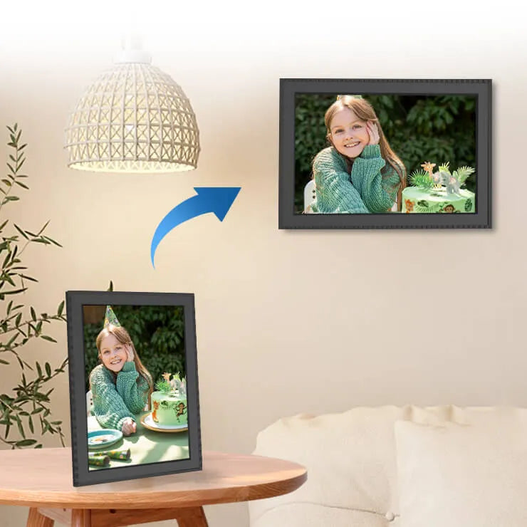 Use technology to bring us closer, letting beautiful memories be displayed anytime. The frame features gravity sensor functionality, allowing it to be used as either a tabletop ornament or a wall-mounted piece