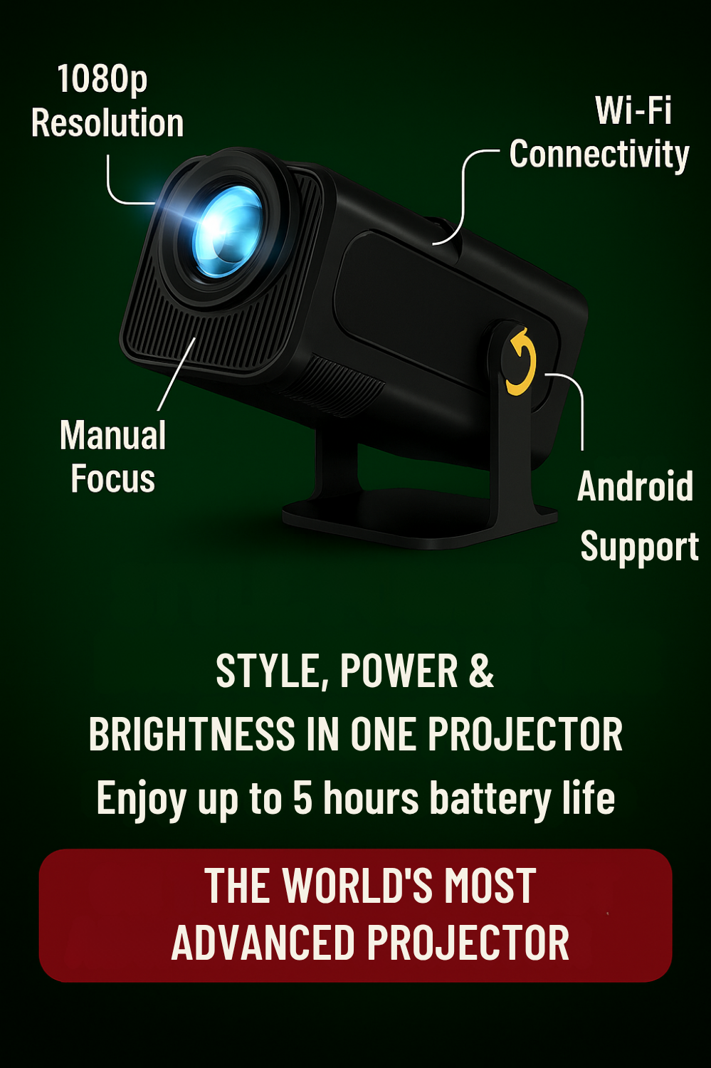Supports 4K content with native 1080p resolution for crisp, vibrant visuals—perfect for movies, games, or presentations.