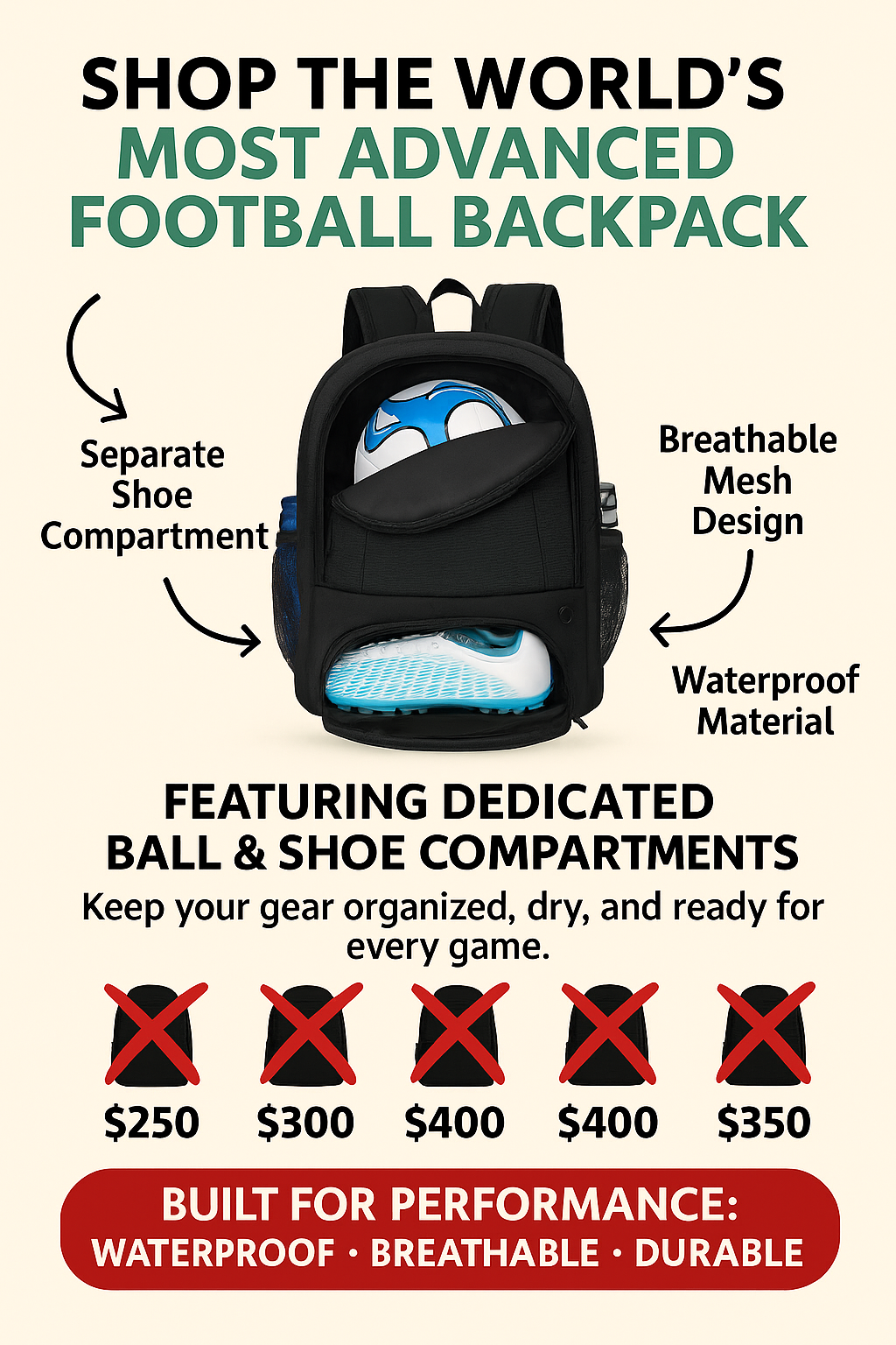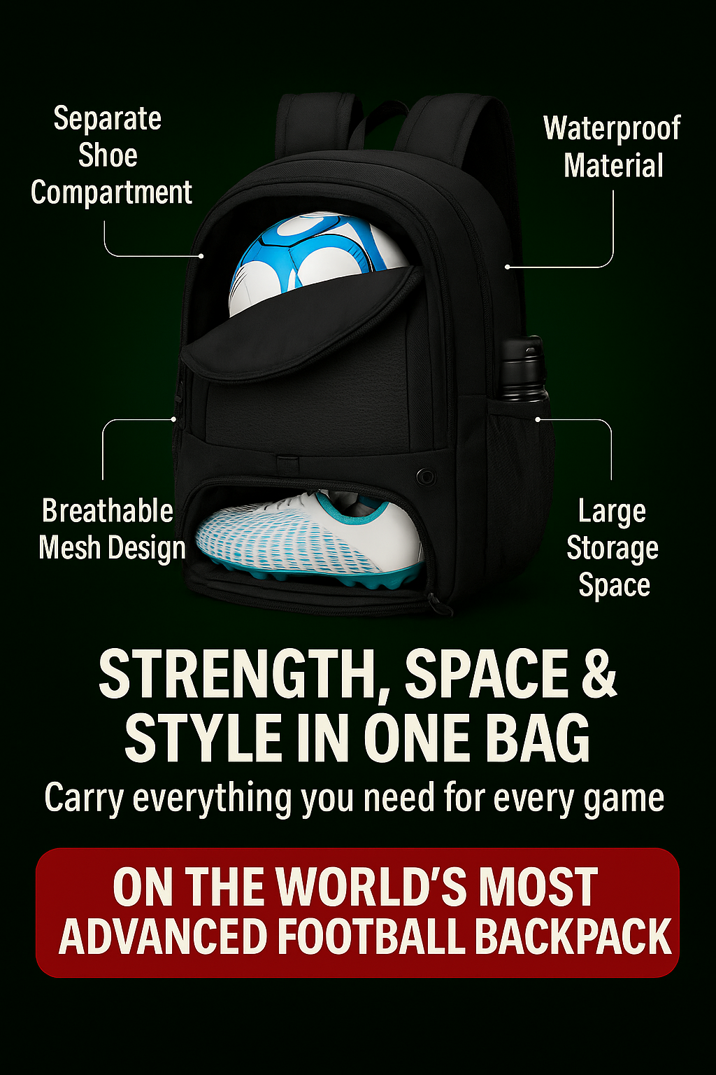 This backpack exceeded my expectations. The material feels strong and weather-resistant, and the space inside is perfect for both football and gym use. I use it almost every day, and it still looks brand new. The separate compartments are a game-changer — especially the one for shoes. The Sportura Pro just makes everything feel more professional.