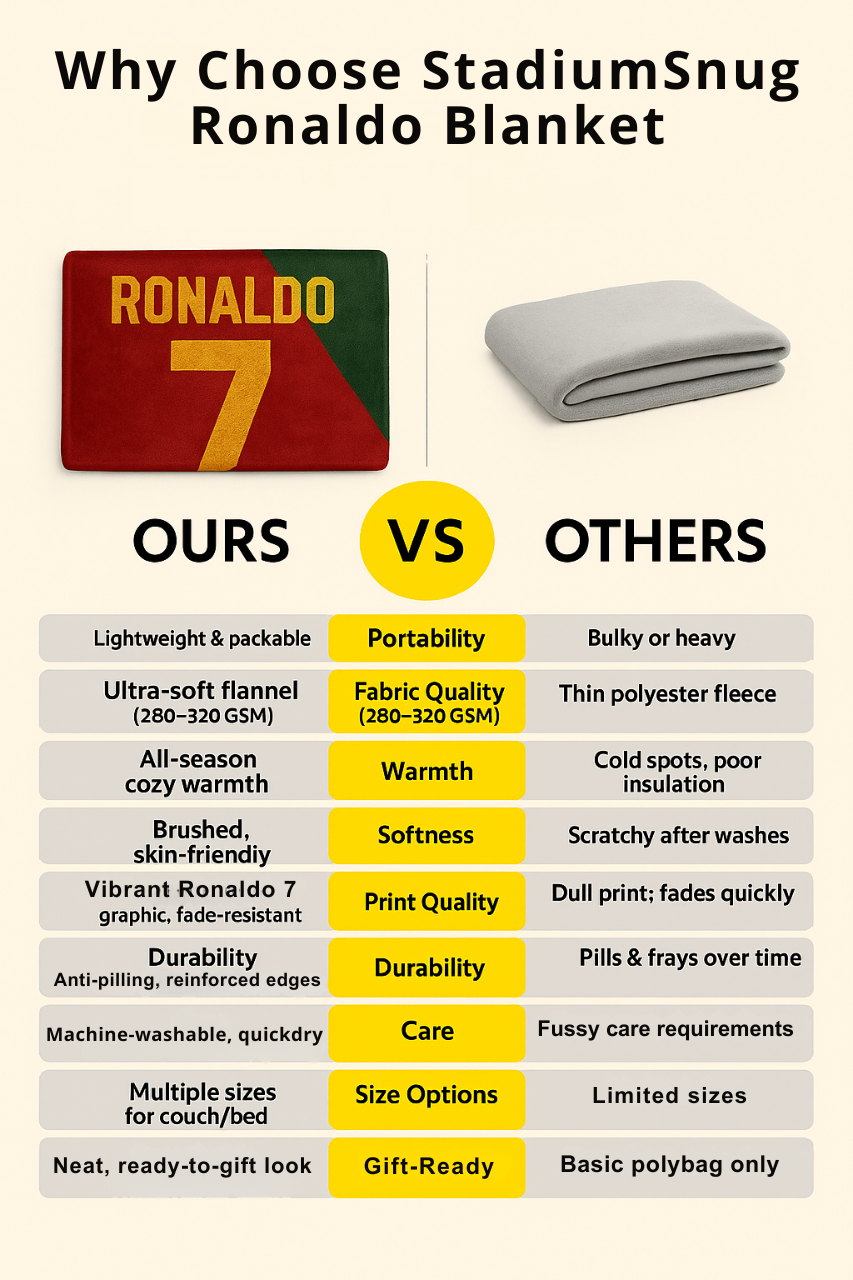 The StadiumSnug Ronaldo Edition is perfect. It’s not just a blanket — it’s part of my match-day ritual now. The design is bold, and it feels like a real fan essential.